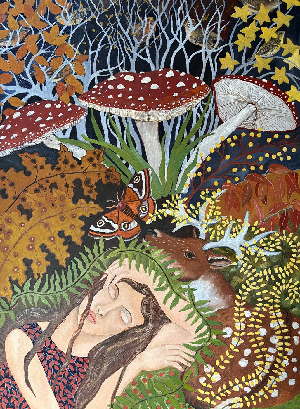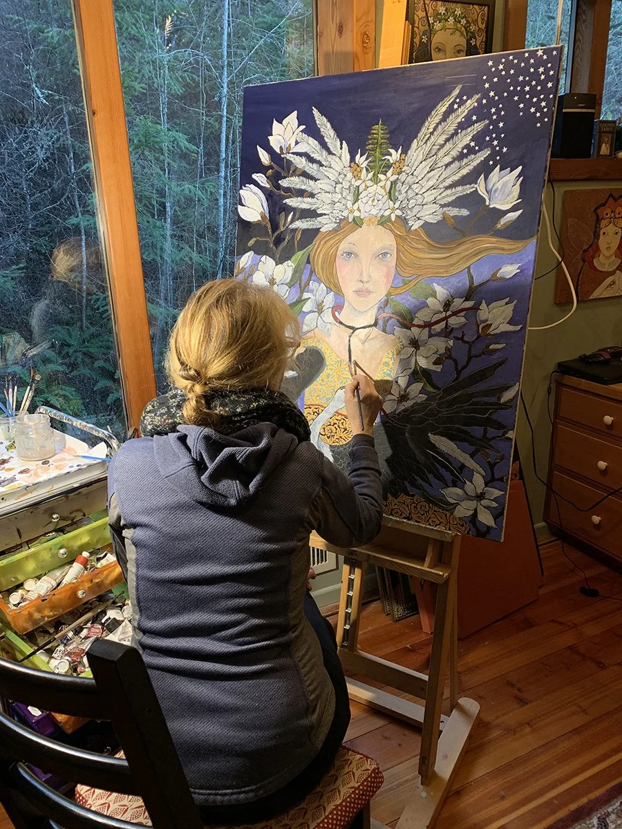 I have always wanted to create the intricate and complex web of images that surround me in my garden and dreams. My work is full of patterns and colors that reflect what is happening around and within me. I am influenced by Art Nouveau and fairytale illustrators from the 1800 hundreds.