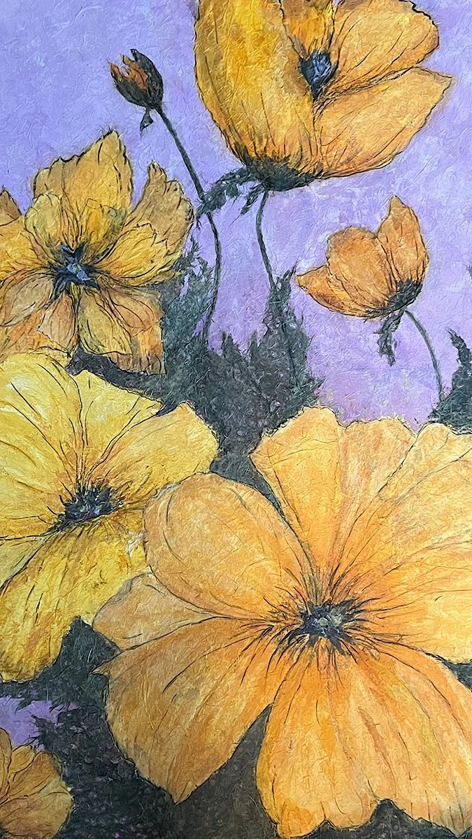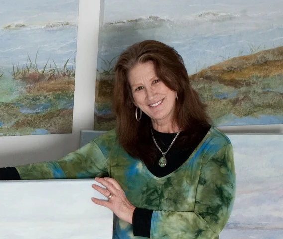 BJ Dollahite - "Inspiration is the start of my pieces. I work from nature, on site sketches and photos. My painting style is contemporary expressionistic with subtle hints of the abstract. The technique is called Watercolor Collage and requires transparent layers of rice papers and pigment on canvas. Creating a painting that emanates depth, textures and interesting shadows."