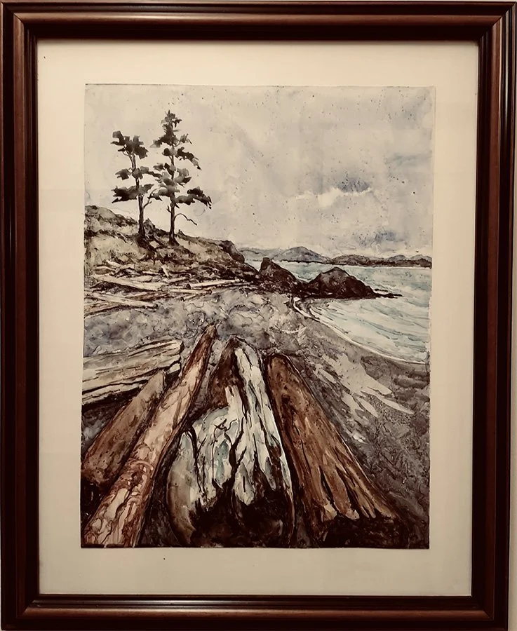Reclaimed Driftwood, Copper, Sea Glass, Watercolor