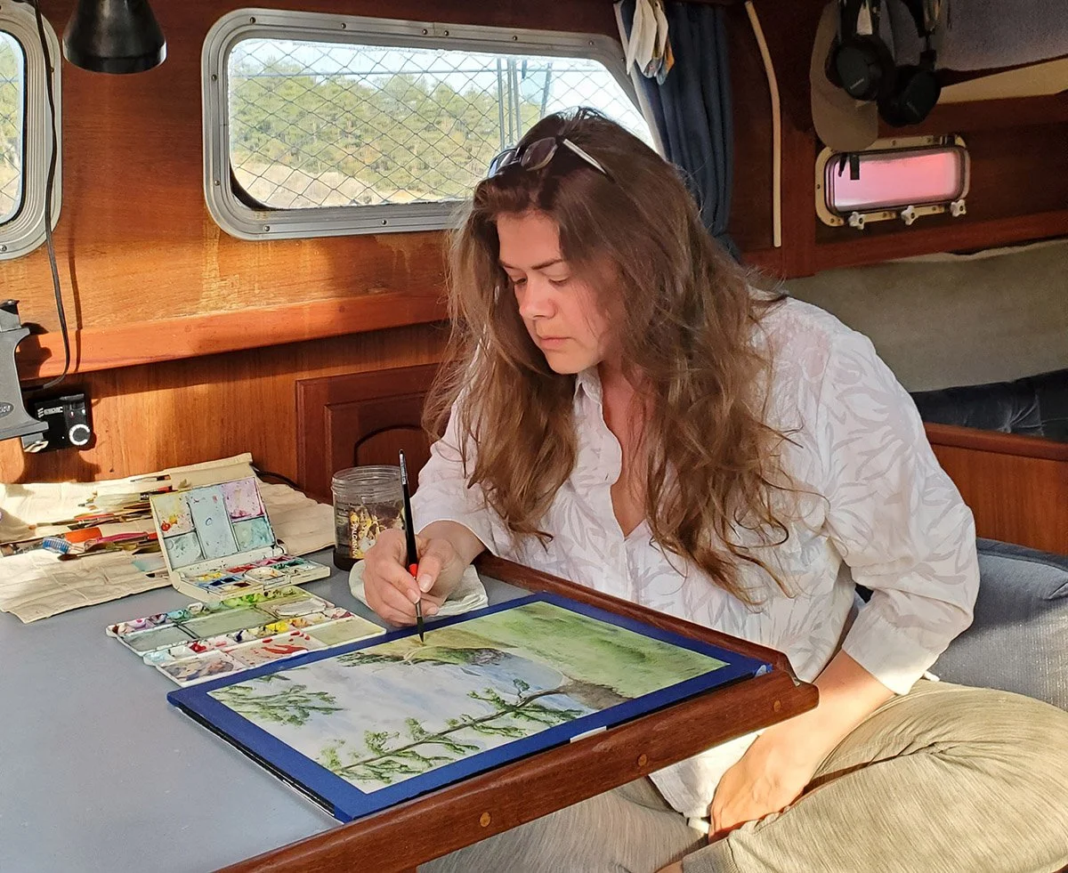 April Randall - For over two decades, watercolor has been my medium of choice. My work is a direct reflection of my life aboard a sailboat in the San Juan Islands, where I transitioned from abstraction to capturing the immediate landscapes and wildlife that surrounded me. The discipline of plein air painting from my boat, while idyllic, presented a unique constraint: the physical limit of a small work surface.